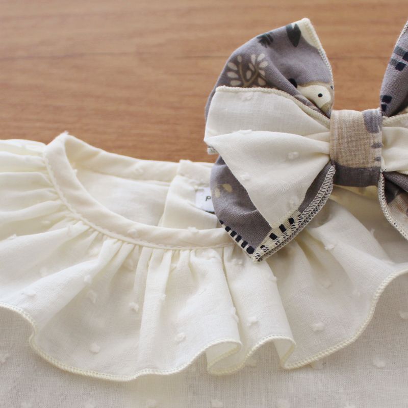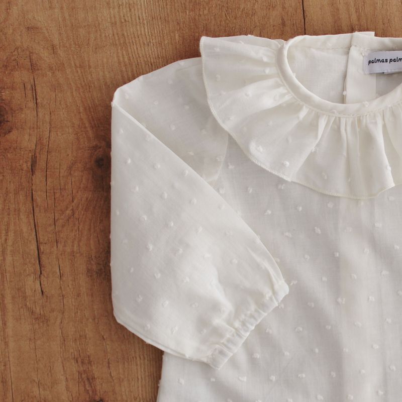Camisa de plumeti arena con cuello volante.