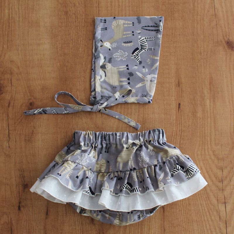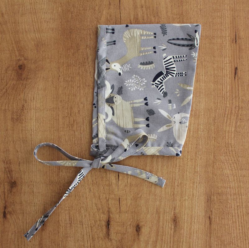 La original capota duende está confeccionada en el estampado Nebraska gris. Composición 100% algodón.