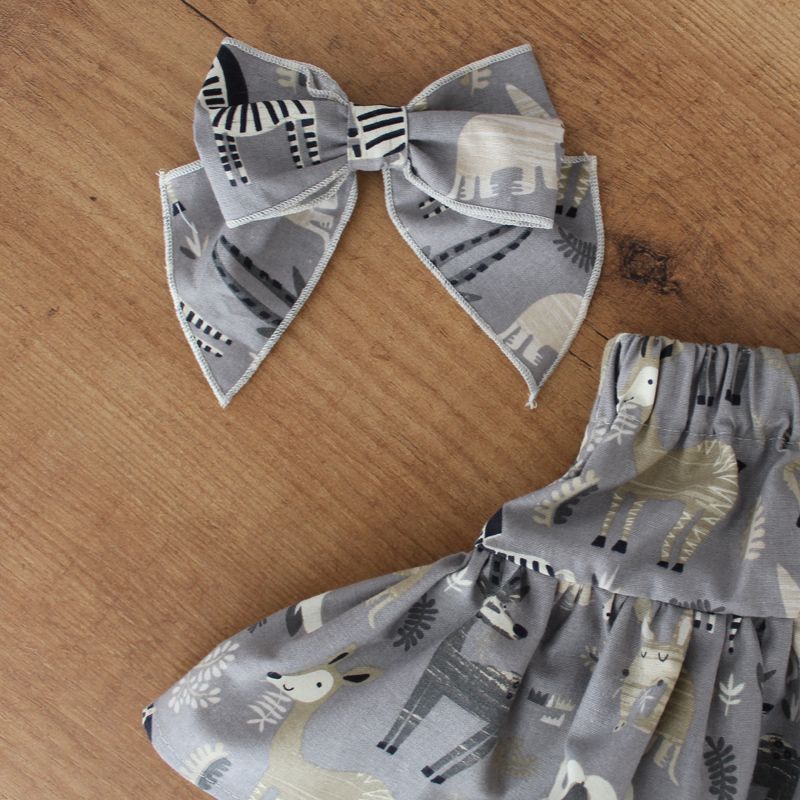 Lazo para el pelo con pinza en estampado Nebraska oscuro.